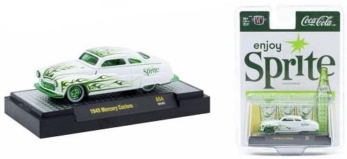 Coke-Era Cool: '49 Mercury Custom Pops in Sprite Green. This limited edition 1:64 scale 1949 Mercury Custom by M2 Machines brings soda-fountain nostalgia to life with authentic Coca-Cola licensed Sprite graphics and crisp period detailing. The diecast metal body and chassis offer solid weight, while the hood opens to reveal engine detail beneath. Rolling on rubber tires and featuring a fully detailed interior, this classic rides in style on a vibrant Coca-Cola blister card—perfect for collectors chasing vintage flavor.