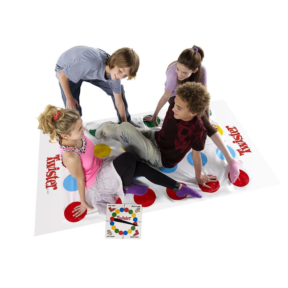 The Twister game challenges players to put their hands and feet at different places on the mat without falling over. Remember playing the Twister game when you were a kid? Featuring classic Twister gameplay, the last player standing wins in this active game. When kids need an indoor activity get their wiggles out, this classic Twister game can be a fun choice. The Twister game instructions include rules for playing in teams including tips for having a Twister game tournament. Players can have a lot of fun as they try to keep their hands and feet on the mat; it's a fun and active game for parties and family time. Add a twist of fun into any party or family night with the classic game that ties players up in knots! One person gives the spinner a whirl -- see what's next as players try to keep their hands and feet on the mat! Right foot red! Who can do it? Left foot green – who's got it? If a player's knee or elbow touches the mat or falls over, they're out. The last player standing wins! Hasbro Gaming and all related terms are trademarks of Hasbro.