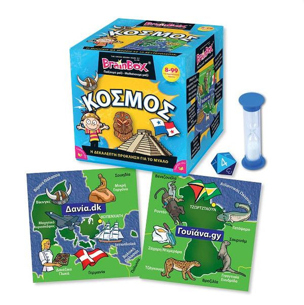 Εξερεύνησε όλες τις χώρες του κόσμου από το σπίτι σου! Διάλεξε μια κάρτα μέσα από το BrainBox. Αναποδογύρισε την κλεψύδρα και προσπάθησε να μάθεις απ'έξω την κάρτα σε 10 δευτερόλεπτα! Τώρα ρίξε το ζάρι και απάντησε στην αντίστοιχη ερώτηση. Αν απαντήσεις σωστά κρατάς την κάρτα, αν απαντήσεις λάθος βάζεις την κάρτα πάλι μέσα στο BrainBox.Σκοπός του παιχνιδιού: Μάζεψε τις περισσότερες κάρτες μέσα σε 10 λεπτά.