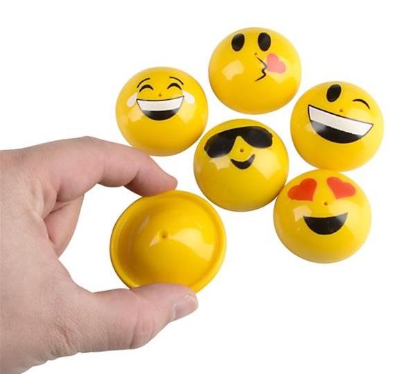 Emoticon poppers come in a variety of colors and faces. Flip inside out and set flat. Watch as the popper goes “pop”. Great for small game prizes. Ideal impulse item