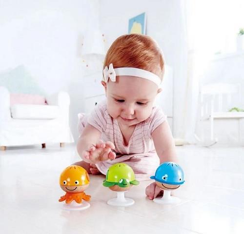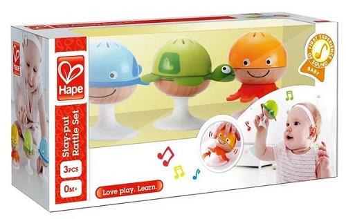 Le set de hochets Hape Put-Stay enchantera votre tout-petit avec ses sons différents, ses couleurs vives et ses animaux aquatiques. De plus, avec leurs ventouses pratiques, le temps de jeu est possible n'importe où, n'importe quand ! Les jouets pour bébé soigneusement développés stimulent les sens de bébé et encouragent la découverte. Améliorez les compétences de préhension précoce Permettez à votre tout-petit d'explorer un peu son hochet géométrique, laissez-le améliorer sa motricité globale et stimulez le sens de l'ouïe en secouant ses hochets.