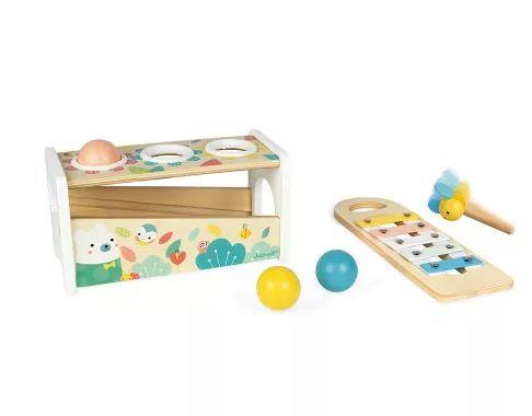 It's springtime in baby's room! Flowers and cute animals have made an appearance on this pretty wooden skill game. It will allow your little one from 18 months old to develop his/her dexterity while having fun. The Pure Tap Tap xylo is a 2 in 1 game: a bee hammer to hit the 3 balls that fall while tinkling the keys of the xylophone, which is also removable to be able to play everywhere! Children will be able to learn about colours by placing each ball on the right colour hole. They will awaken their senses, imagine and create their first stories.