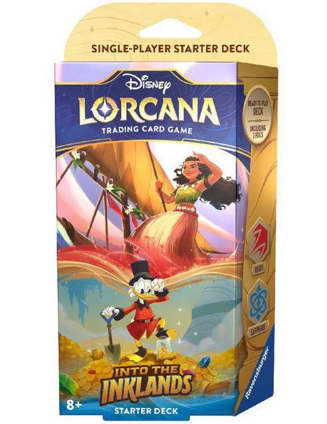 With this starter deck, get ready to ruffle feathers from Motunui to Agrabah! Ruby glimmers like Moana – Born Leader learn from voyagers near and far, while Sapphire glimmers like Scrooge McDuck – Richest Duck in the World and his DuckTales friends work together to get the most out of items.