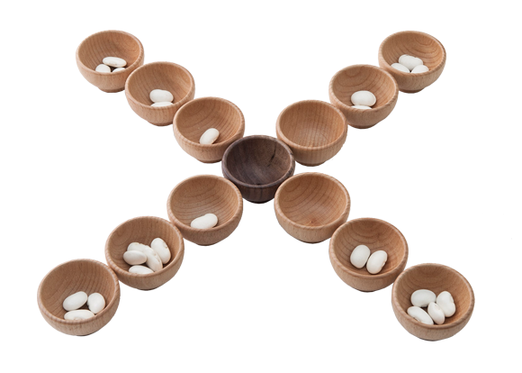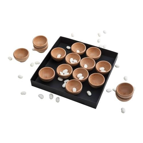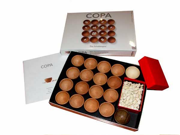 COPA is more than a game. 18 beautiful wooden bowls made of beech, maple and walnut and a box full of white beans make easy and variable repertoire for four different games.