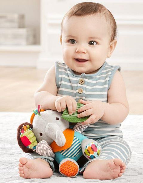 Full of textures, patterns and sounds, little hands stay active as baby explores rattles, crinkles and more. This colorful character’s soft bandana teether detaches for mom to wear around her wrist for quick access. Perfect for multi-sensory play, this cute companion is ideal for fun at home or-on-the-go. Features: Soft textured bandana teether detached to be worn around the wrist; Multiple fabrics and textures; Rattle ring and chime; Fish shaped teether; Crinkle details; Attaches to stroller, car seat or infant carrier; BPA-free PVC-free Phthalate-free