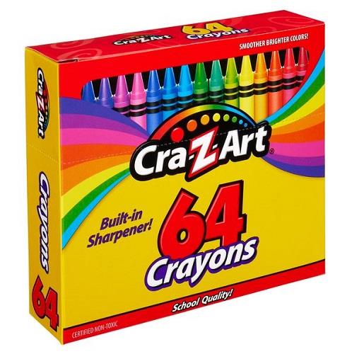 Get your creative juices flowing with Cra-Z-Art's 64 crayons! These colorful sticks glide on smoothly with brighter colors, perfect for your next art project. Plus, with a built-in sharpener and non-toxic formula, you can stay sharp and safe without breaking the bank. School quality with a built in shapener!