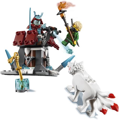 This LEGO® NINJAGO® set includes 2 new-for-June-2019 minifigures: Lloyd and Blizzard Warrior, plus a new-for-June-2019 Lloyd’s wolf figure. Cool toy for kids who can create Blizzard Warrior’s fortress with LEGO® building bricks, featuring space for a minifigure, a shooting toy crossbow and ice elements. This battle toy building set also includes a buildable ice holder with Lloyd's golden sword. Weapons include ninja minifigure Lloyd's flaming torch and silver-colored toy katana, and Blizzard Warrior’s ice katana. Playset also includes Lloyd’s katana holder and Blizzard Warrior’s ice armor accessory elements. Cool toy for kids to recreate exciting action from the NINJAGO® TV show. Add 70676 Lloyd’s Titan Mech and 70678 Castle of the Forsaken Emperor LEGO® sets to play out more adventures with Lloyd in the Never-Realm. Fortress measures over 1” (5cm) high, 2” (7cm) wide and 2” (7cm) deep.