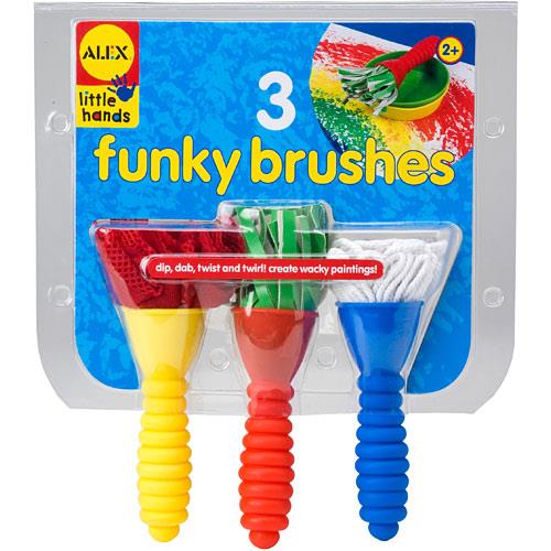 Make unique and creative paintings with 3 Funky Brushes. The different textured brushes can be used to dab, dip, twist, twirl and swish! Easy to grab grooved handles make these small brushes perfect for little hands to grab, hold and paint the day away!