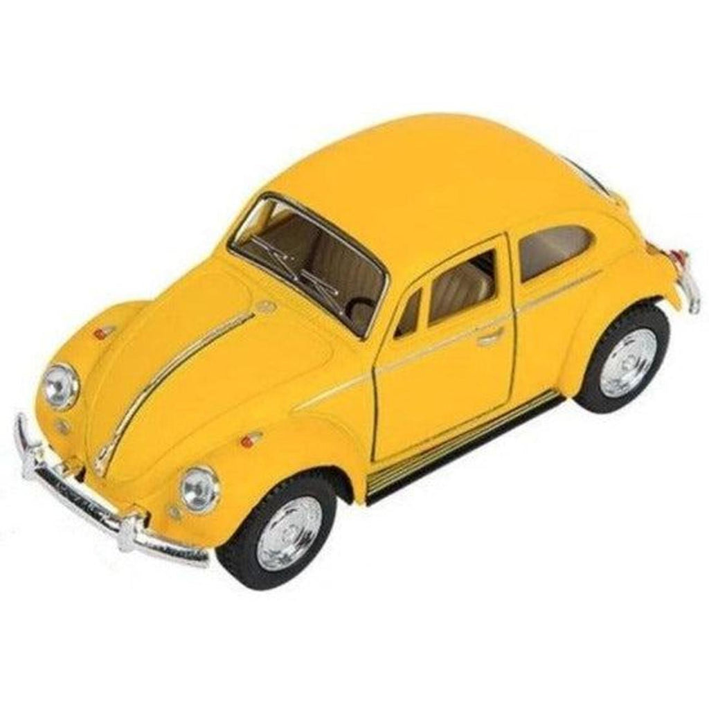 Cette cool Volkswagen Classic Beetle est fabriquée à partir de métal véritable. Il dispose d'un moteur rétractable, d'un corps moulé sous pression et de portes qui s'ouvrent. Échelle 1:32 et 5 pouces de long. C'est jaune.