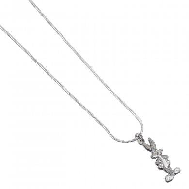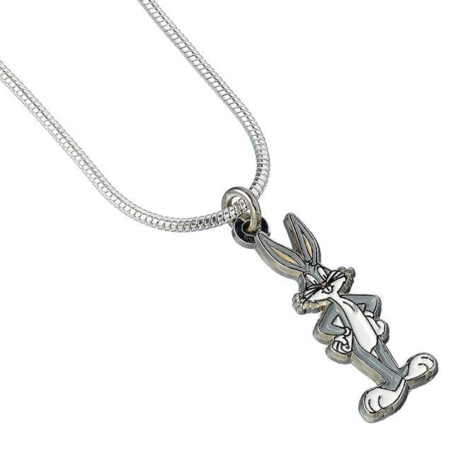 Branded Looney Tunes Bugs Bunny Necklace. Silver plated pendant with coloured enamel. The chain is a silver-plated snake chain. 16 inchs long with a 2 inch extender chain.This necklace comes on the official Looney Tunes branded card packaging. This necklace has matching Looney Tunes slider charms and bracelets.