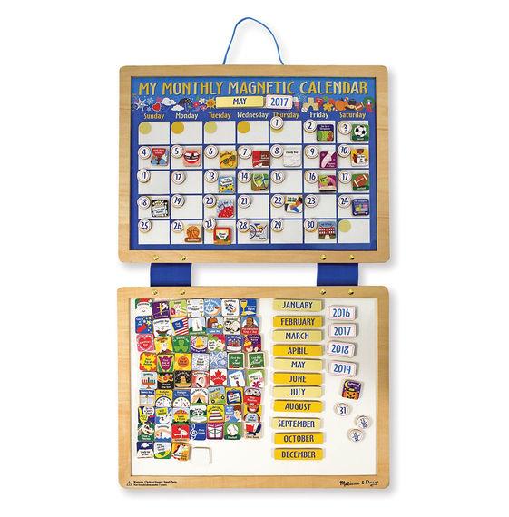 • Magnetic calendar to create monthly display with dates, holidays, events, and activities