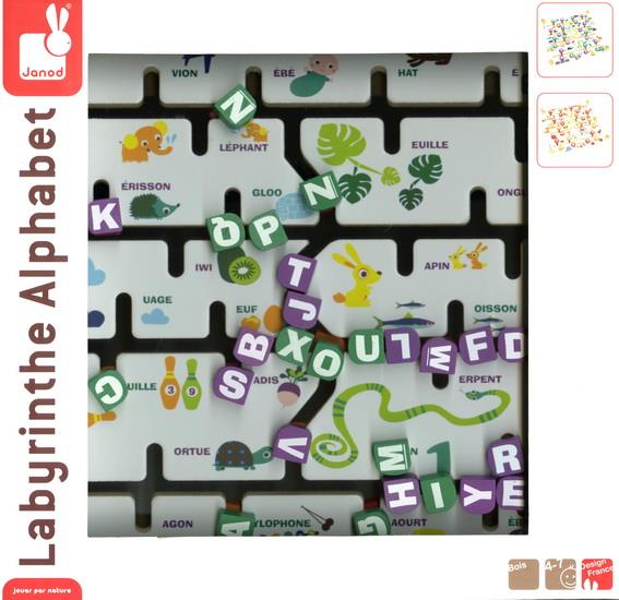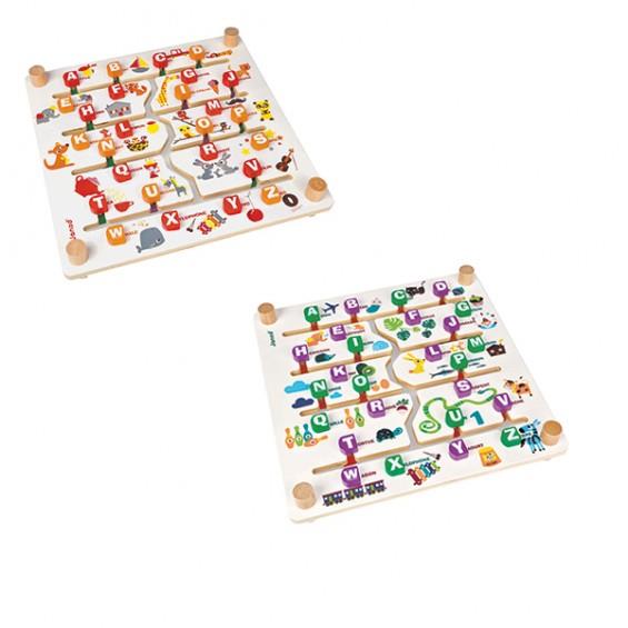 Labbyletters est un jeu de dextérité pédagogique pour apprendre l’alphabet tout en s’amusant. Comporte un visage français et un visage anglais.