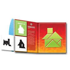 The Tangoes game everyone loves is now available on-the-go. These sets deliver all the fun of traditional Tangrams in a compact, magnetic form. The wire-bound puzzle booklets measure 6.5″ x 6.5″ and snap shut to store the seven magnetic tangram pieces provided. 24 puzzles are given in each book, and players solve the puzzles on the magnetic play surface included. Using the magnetic puzzle pieces, players fashion a variety of pictures including animals, objects, and people. The magnetic force is strong enough to keep pieces from falling off the board as children move them around. Colorful, interactive, and easy to take anywhere, these puzzle books will be a hit on the road or at home.
