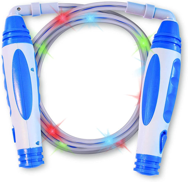 No Batteries Required. Powered by YOU! You’ve never seen a jump rope like this before. Twirling Geospace's new SPARKLER ™ LED Jump Rope around their bodies, kids are in the center of a cascade of flashing LED multi-colored lights embedded inside the tinted rope. Not only is it the coolest version of a jump rope ever invented, a thrill for kids of all ages, but parents appreciate the fact no batteries are ever required. Within one handle is a rugged dynamo. With each twirl of the Jump Rope, the dynamo produces low-voltage electricity that keeps the LEDs sparkling. Its super-rugged design and quality craftsmanship assure the light show will go on for years and years, and parents end up saving a bundle in battery bills. Comes in just one Size (rope length is 99 inches)
