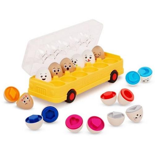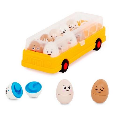 39-Piece Set: Match, learn, reflect, and express with matching eggs, Expression Cards, a Mirror Card, and a toy bus!