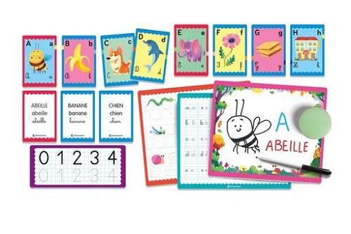 Un coffret amusant contenant 26 cartes illustrées, 3 ardoises, un feutre et une éponge pour apprendre à écrire. L’enfant pourra s'exercer autour de différentes activités progressives de prégraphisme et d'écriture de lettres et de mots en majuscules et minuscules, en script et en cursives. Un jeu idéal pour développer les connaissances et le langage. Avec des niveaux de difficulté progressifs pour un apprentissage facile et stimulant. Fabriqué en Italie.Imaginé, conçu et développé en Italie.