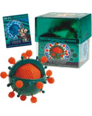 This hands-on interactive model provides magnified ans cross-sectioned detailing of a Virus. Includes Ein-O's I Know Guide. The I Know Guide includes an introduction and info-briefs on the virus membrane, capsid, genetic material, enzymes and examples of viruses. Also, the instruction booklet has coated pages, so a bit more heavy duty for kids' use. Everything is included in a reusable plastic box.
