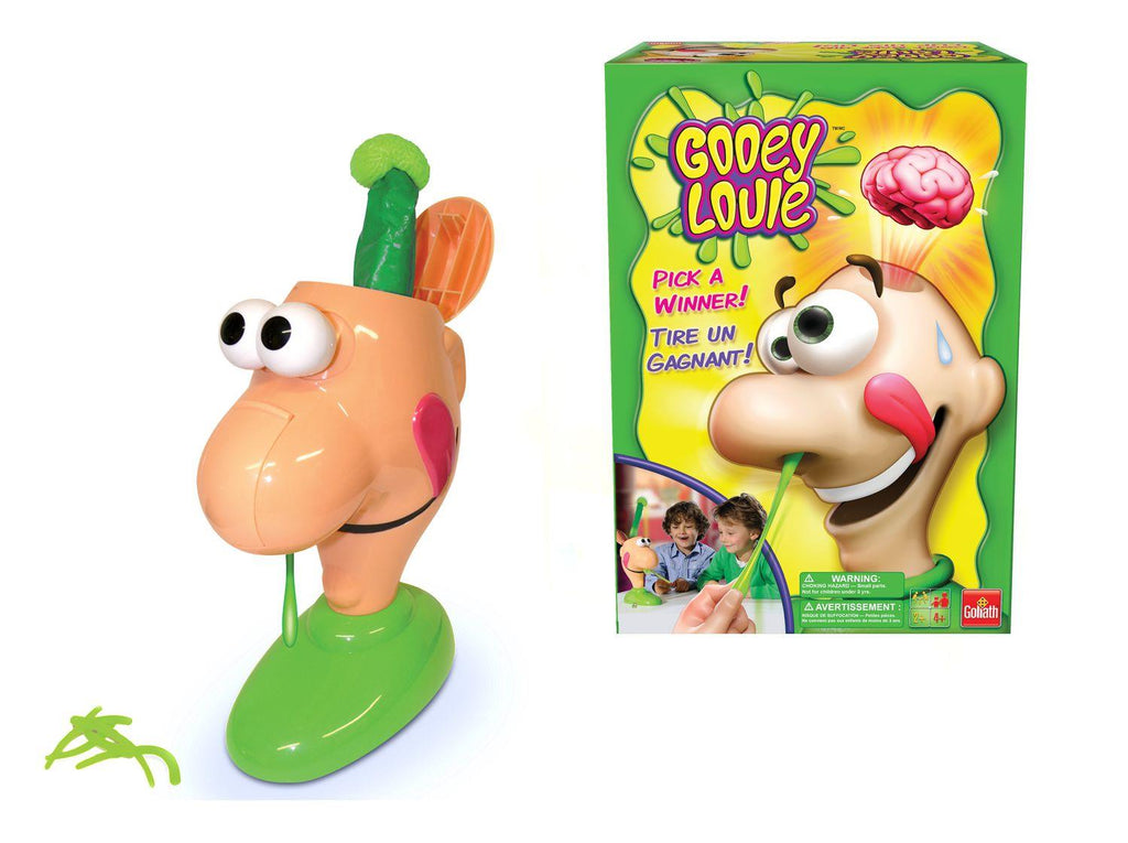 Pick a winner with Gooey Louie - who "nose" what you'll find when you dig in and try? Players stick a finger up his nose and pull out a gooey, but watch out . . . if you pick the wrong gooey from Louie, his head will flip open, and his brain will fly out! This kids game helps develop fine (and gross!) motor skills and hand-eye coordination. Who knew a booger game could be so much fun? "Pick" a winner with Gooey Louie. If you pick the wrong gooey, Louie's head flips open, and his brain flies out! Helps develop fine (and gross!) motor skills.