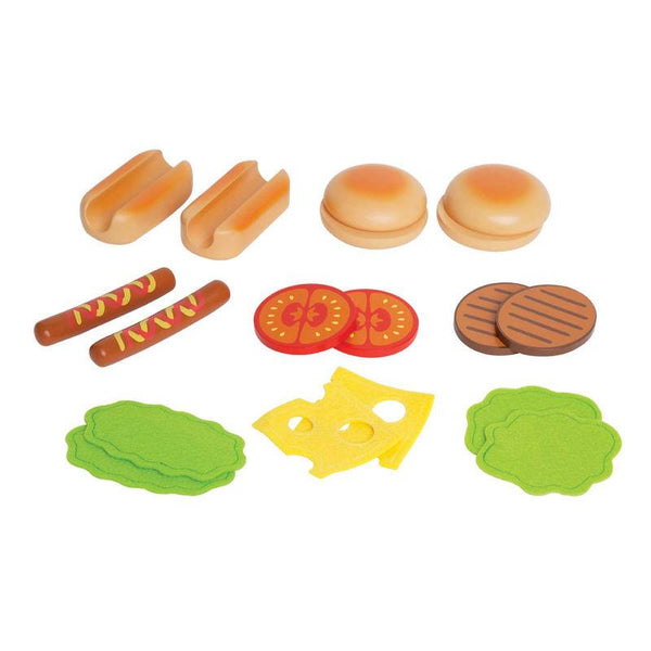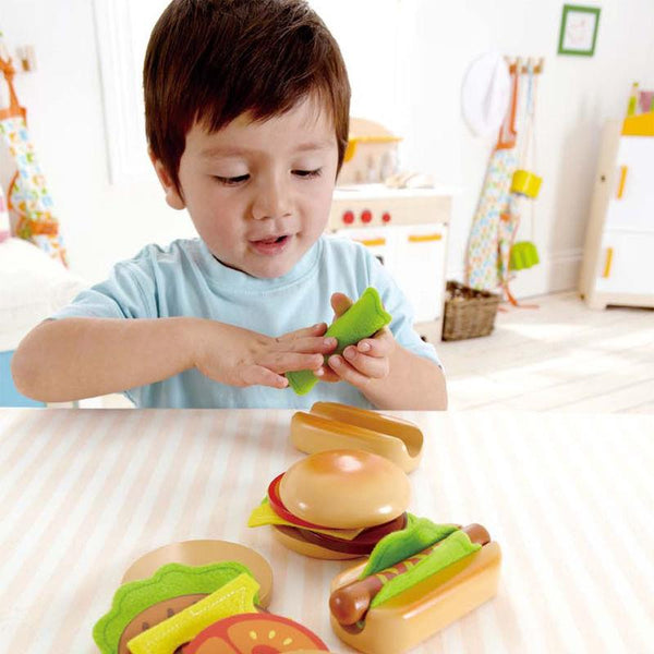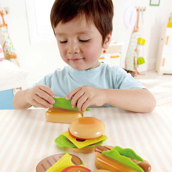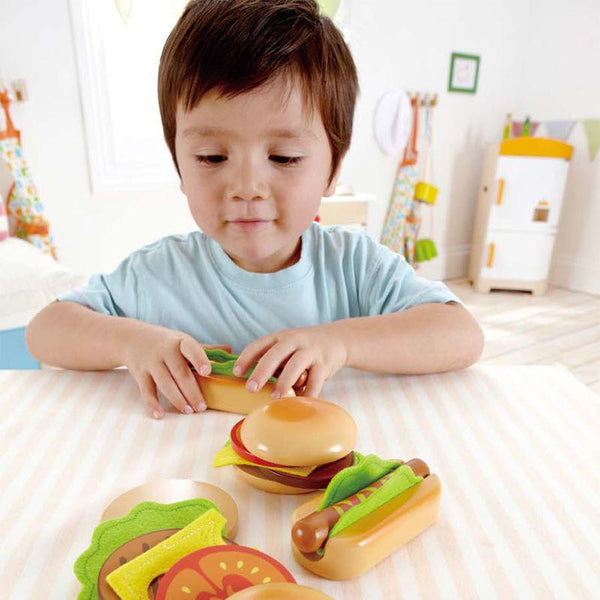 Serve hamburgers and hot dogs for a quick meal or backyard BBQ. Don't forget the mustard! Imagination & Creativity: Encourages imitative and imaginary play; promotes fantasy story telling, role playing, and creativity. Social Skills: The basics of communication, cooperation, and collaboration; encourages trust, friendship, and language development.
