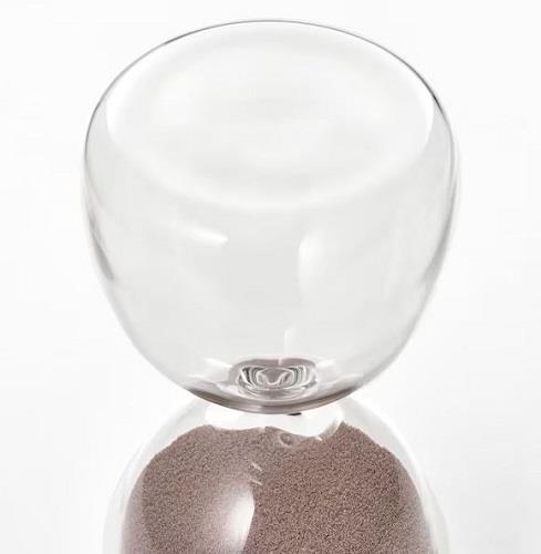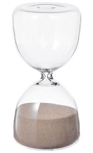 A decorative alternative to modern timekeeping. Through the clear glass you can see the sand run slowly down, and when you flip the hourglass the first sand grains can be heard landing on the bottom.