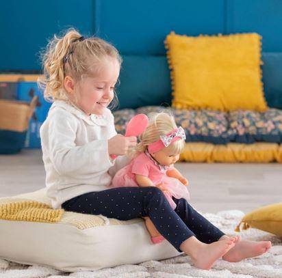 Adèle is the perfect large baby doll for caring for doll like real parents. Children can dream up and try out their very first hair-styles using the doll's special hairbrush on her long, easy-to-brush hair!