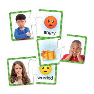 Designed with preschool readiness in mind, this emotion toy’s 24 colourful two-sided puzzles give kids an easy way to visualize essential social-emotional learning concepts. Each learning puzzle encourages kids to match emotion words and emoji-style faces with photos of real kids portraying those feelings, so they’ll also build vocabulary skills as they play! The Feelings & Emotions Puzzle Cards are self-correcting—there’s only one right answer to each puzzle, so kids can focus on their feelings without frustration. With packaging that doubles as reusable storage, these puzzles are ready for conversations at home, in classroom calm down corners or school counselor supplies, or even as a therapy game for kids!