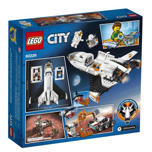Includes 2 LEGO City astronaut minifigures. This building set for kids features a space research shuttle with opening cockpit, 2 large opening doors and space inside for the storage drone, plus a NASA-inspired Mars rover with new-for-June-2019 articulated grappling arm, laser and tilting solar panels, storage drone with opening compartment, plus a helidrone with spinning rotor blade and scanner to read a secret symbol discovered on Mars! Accessory elements include a helmet with blue visor, Extra Vehicular Activity suit with golden visor, scanner and 2 new-for-June-2019 geodes with blue crystals. Use the LEGO Life app to access the intuitive Instructions PLUS building instructions. Help even younger builders through the building process, with easy-to-use zoom, rotate and ghost-mode functions to visualize their creations as they go. Download LEGO Life the app at the iOS or Android app store. Ask your parents' permission before going online. This fun construction toy makes a great gift for kids. Research shuttle measures over 3” (9cm) high, 9” (23cm) long and 8” (21cm) wide. Mars rover measures over 1” (5cm) high, 2” (7cm) long and 2” (6cm) wide. Helidrone measures over 1” (4cm) long and 1” (3cm) wide.