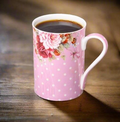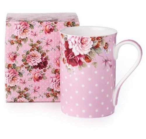 Looking for a unique and stylish addition to your mug collection? Look no further than the "Dots & Roses Pink" fine bone china mug. This stunning mug features a playful pink polka dot design that is accented by beautiful and intricate red & pink roses. Made of fine bone china, this mug is not only elegant and durable, but it is also lightweight and easy to clean, making it perfect for everyday use. Whether you're enjoying a cup of coffee in the morning or a cup of tea in the evening, this mug is sure to add a touch of sophistication and elegance to your home. Plus, it comes in an attractive gift box, making it the perfect gift for any occasion. Don't miss out on this unique and beautiful mug. Add it to your collection today!