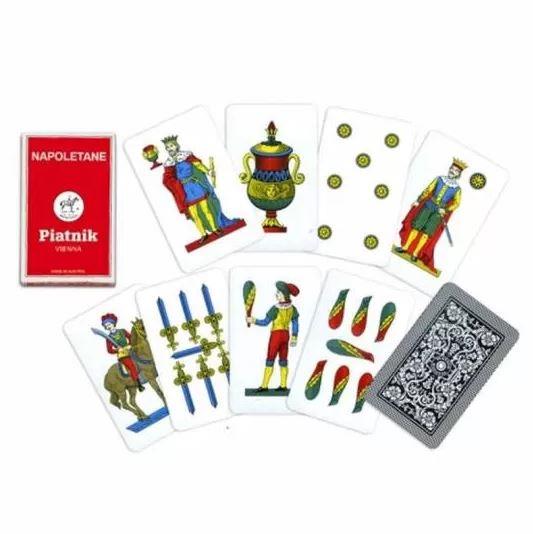 This specialty deck for classic Italian games such as Scopa and Briscola, is an authentically European size sitting in the café and taking a few tricks.Scopa is a traditional Italian card game (actually a family of card games that includes Scopone, Scopetta, and Scopone Scientifico) played in regions of Italy for over 400 years. The game is played with a 40-card Italian deck (similar to a conventional deck minus either the 8s, 9s, and 10s or alternatively, the Js, Qs, and Ks). Four-player games are usually played in partnership; other numbers of players typically play for themselves. In the original Scopa base game, four cards are turned face up on the table, and players are dealt hands of three cards. On his or her turn, a player may capture any of the face-up cards on the table if the sum of the cards captured equals the value of the card played. If a player cannot make a capture, he or she must discard a card face-up onto the table. Cards are progressively handed out in lots of three until the deck is exhausted. When the deck is exhausted, scoring is calculated. Players earn 1 point for ''sweeping'' the table, that is, for clearing the table of all face-up cards; 1 point for capturing the most cards; 1 point for capturing the most cards of the coin suit; 1 point for capturing the 7 of coins (the ''settebello''); and 1 point for the best ''primiera,'' that is, the best assemblage of high-value cards from each of the four suits. The game is traditionally played until a player or team reaches a set number of points, usually 11 or 21. The name ''Scopa'' means ''sweep'' or ''broom'' in Italian, and refers to the action of picking up all face-up cards on the table. In some ways, Scopa can be thought of as a precursor to many popular modern game designs. The multiple competing goals and the limited hand-size make for a very modern-feeling game. A great little game for 2 or 4 players.